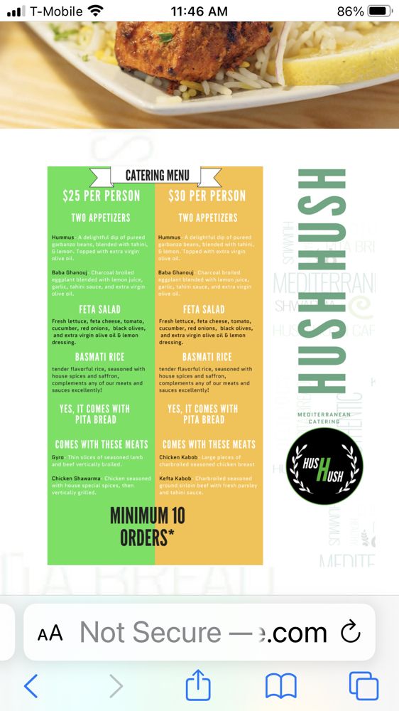 Introducing the menu at Hush Hush Cafe, a Lebanese-Mediterranean-Halal restaurant located in Lake Oswego, Oregon. This casual spot offers a variety of options for all dietary preferences, from vegan and vegetarian dishes to meat lovers' favorites like chicken kabobs and gyros. Customers rave about the consistently excellent food, with highlights including flavorful hummus, baba ghanoush, and house-made flatbread. The menu features popular items like veggie mezza, stuffed eggplant, and jumbo gyro wraps. Service is fast, friendly, and efficient, making it a great choice for a quick meal or gatherings with friends. With plenty of parking, wheelchair accessibility, and free Wi-Fi, Hush Hush Cafe provides a welcoming and comfortable dining experience for all. Don't miss out on trying their delicious baklava for a sweet ending to your meal!